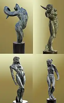En las esculturas se mezclan tres grandes estilos (cubismo, expresionismo y surrealismo), que se combinan incluso con otros elementos que siempre fueron considerados propios del ámbito de otras disciplinas plásticas.[10]