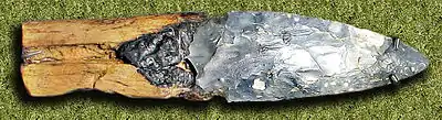 • Los accidentes de talla. Gracias a los experimentos de talla es posible reconocer lascas características de determinados hechos fortuitos, por ejemplo, las lascas u hojas reflejadas (en las que la onda de fractura no llega al final, sino que cambia bruscamente de dirección, hacia la superficie del núcleo, resultando lascas demasiado cortas y con la extremidad roma), las lascas u hojas sobrepasadas (es el efecto contrario, la onda de fractura va hacia el interior del núcleo, resultando lascas sin filo, ya que se llevan toda la superficie de lascado); lascas u hojas rotas al extraerse (la onda de fractura se divide en numerosas ondas, haciendo pedacitos el producto deseado), los «seudoburiles de Siret»[14] son lascas partidas por la mitad, a través de su eje técnico, a causa de una onda de fractura ortogonal a la onda normal de lascado, saliendo así dos medias lascas casi iguales.