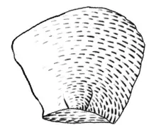 El «concoide» es la parte más notoria de la cara inferior (o ventral) de la lasca; esto es, la superficie a lo largo de la cual se produce la fractura que separa la lasca del núcleo. Veamos su descripción.[3] El «punto de impacto» que, en realidad, es una pequeña superficie, cuasi circular o elíptica, en la que el percutor entra en contacto con la roca; es el origen desde el que se desarrolla un tronco de cono (que los especialistas llaman «cono de percusión»), que se va abombando hasta adquirir una forma similar a la concha de un molusco bivalvo, de ahí el nombre de concoide.[4] Después, la curva de la cara inferior se suaviza hasta casi desaparecer. Por el contrario, en el núcleo queda la impronta de la lasca, el llamado negativo de lascado (o, simplemente, lascado), que tiene la misma morfología pero inversa: un contraconcoide más o menos pronunciado y, a continuación, una superficie sutilmente cóncava.