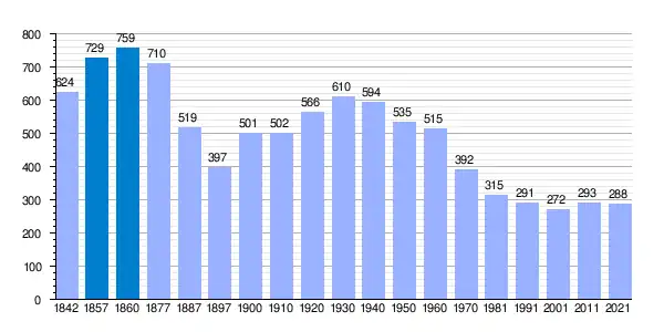 | Gráfica de evolución demográfica de Laspuña[3] entre 1842 y 2021 |