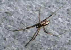 La hembra alcanza los 10 mm, el macho mide unos 3-4 mm. Normalmente se alimentan de insectos, pero también de animales como lagartos pequeños. El cuerpo de las hembras es de color negro con una banda roja en el abdomen.