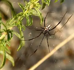 Construye su telaraña con forma de caperuza, habitualmente entre la hierba, esperando en un escondrijo situado en la parte superior.[2] Captura principalmente saltamontes.[2]