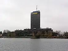 Vista de la sede central de la LTV en la isla de Zaķusala, en Riga (2022)