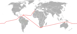 - Llegó a la longitud de su punto de partida oficial de los Países Bajos el 20 de diciembre, ya había cruzado todas las longitudes en el curso de su periplo, se enfrentó a otro 4800 millas náuticas de su finalización oficial.[13]