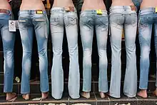 Se han desarrollado nuevas técnicas para obtener el mismo efecto visual usando cloro, (y también lejía, sobre todo utilizada de manera casera para envejecer vaqueros por el movimiento punk) o con enzimas como la celulasa y otras que metabolizan las fibras de celulosa, originalmente empleadas en la industria papelera y alimentaria.[6] También se ha utilizado el proceso mecánico del arenado,[7] para obtener un aspecto muy usado y con agujeros, según la moda del momento. Esta técnica también es controvertida, por las condiciones de trabajo muy malas y las enfermedades pulmonares (silicosis) como consecuencia del polvo y de la poca protección de los trabajadores.[8]