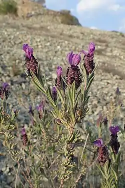 Lavandula stoechas, llamado comúnmente cantueso o tomillo borriquero, es un arbusto ramoso, muy aromático, de hasta un metro de altura de la familia de las lamiáceas. Es una especie nativa de la cuenca mediterránea y Macaronesia y está naturalizada en Australasia.[1]