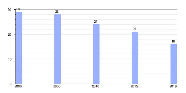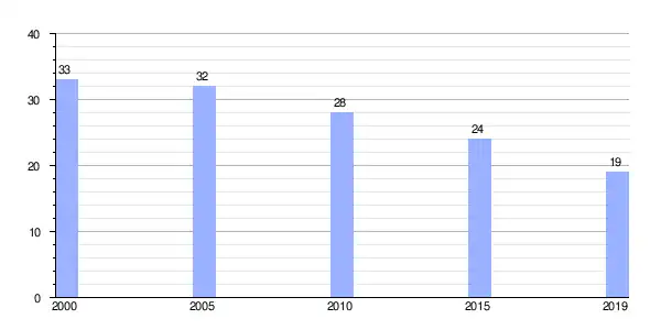 | Gráfica de evolución demográfica de Laxes (aldea) entre 2000 y 2019 |