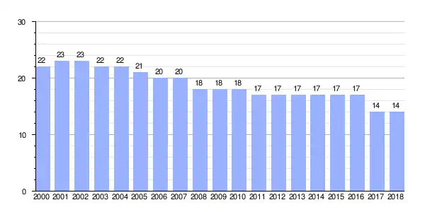 | Gráfica de evolución demográfica de León entre 2000 y 2018 |