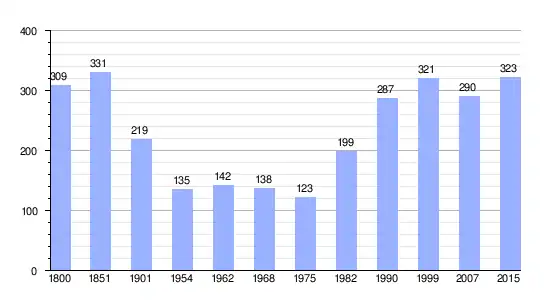 | Gráfica de evolución demográfica de Le Fresne entre 1800 y 2015 |