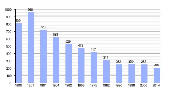 | Gráfica de evolución demográfica de Le Gast entre 1800 y 2014 |