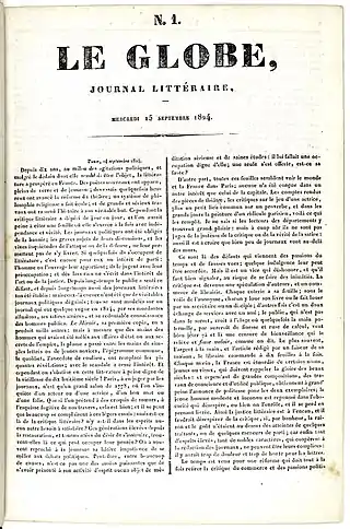 Le Globe era un periódico francés, publicado en París por el grupo Bureau du Globe entre 1824 y 1832, y creado inicialmente con el objetivo de editar publicaciones y creaciones románticas. Fue fundado el 15 de septiembre de 1824 por Pierre Leroux. Después de 1828, el periódico quedó políticamente ligado al liberalismo.