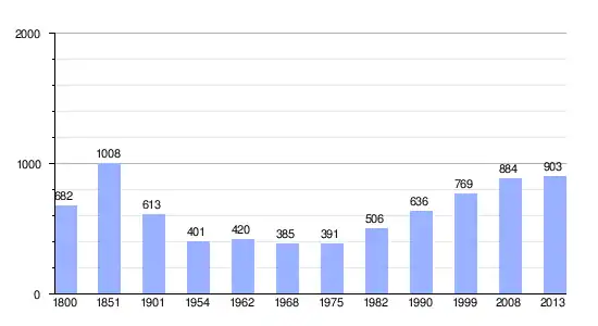 | Gráfica de evolución demográfica de Le Haut-Soultzbach entre 1800 y 2013 |