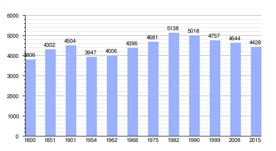 | Gráfica de evolución demográfica de Le Lude entre 1800 y 2015 |