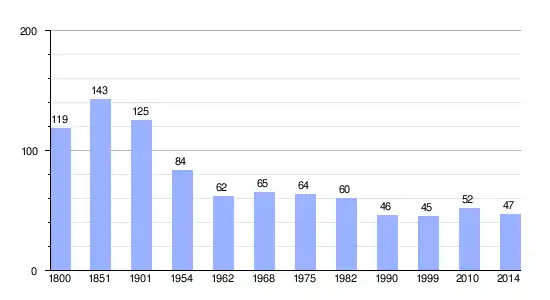 Los datos demográficos contemplados en este gráfico de la comuna de Le Mesnil-Benoist[4] se han cogido de 1800 a 1999 de la página francesa EHESS/Cassini, y los demás datos de la página del INSEE.[5]