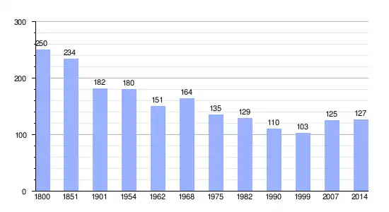 Los datos demográficos contemplados en este gráfico de la comuna de Le Mesnil-Caussois[4] se han cogido de 1800 a 1999 de la página francesa EHESS/Cassini, y los demás datos de la página del INSEE.[5]