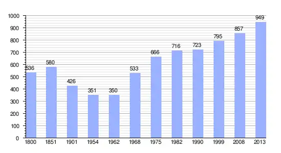 Los datos demográficos contemplados en este gráfico de la comuna de Le Monastier-Pin-Moriès[4] se han cogido de 1800 a 1999 de la página francesa EHESS/Cassini, y los demás datos de la página del INSEE.[5]