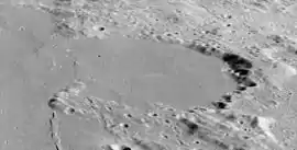El interior de esta formación es relativamente plano y liso, sin accidentes significativos que marquen su superficie. El borde exterior aparece golpeado, desgastado y lleno de muescas como resultado de impactos pasados. Solamente unas pequeñas crestas indican el lugar donde estuvo situado el sector oeste del brocal.
