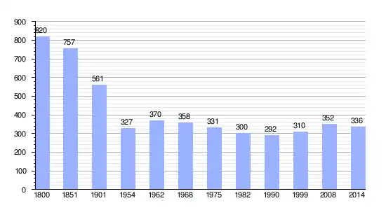 | Gráfica de evolución demográfica de Le Plessis-Grimoult entre 1800 y 2014 |