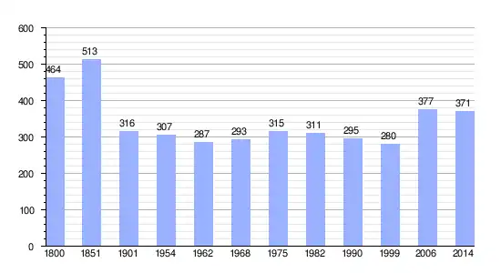 Los datos demográficos contemplados en este gráfico de la comuna de Le Tilleul-Othon[4] se han cogido de 1800 a 1999 de la página francesa EHESS/Cassini, y los demás datos de la página del INSEE.[5]