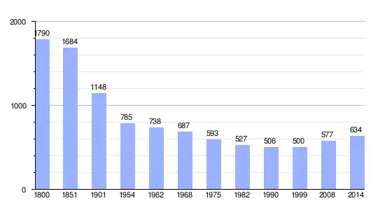 | Gráfica de evolución demográfica de Le Tourneur entre 1800 y 2014 |