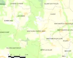 - Página donde se especifican, entre otras cosas, los datos demográficos de la comuna de Saint-Aubin-Château-Neuf entre los años 1793 y 1999. Consultado el 19 de junio de 2016 (en francés)