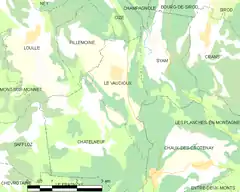 - Situación de Le Vaudioux en un mapa de Francia y de comunas limítrofes (enlace roto disponible en Internet Archive; véase el historial, la primera versión y la última). (en francés)