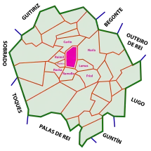 - «Decreto 17/1999, de 21 de enero, por el que se determinan los nombres oficiales de las parroquias pertenecientes a los ayuntamientos de Vedra (A Coruña) y Begonte, Carballedo, Chantada, O Corgo, Folgoso do Courel, Friol, Guntín, Láncara, Outeiro de Rei, Pedrafita do Cebreiro y Ribas de Sil (Lugo).». Diario Oficial de Galicia n.º 25. España. 8 de febrero de 1999. p. 1347. Consultado el 31 de diciembre de 2020.