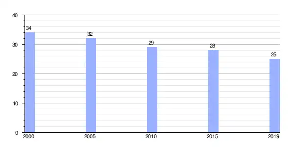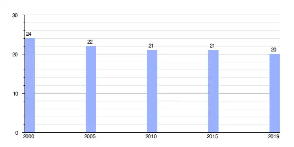 | Gráfica de evolución demográfica de Lebrujo (parroquia) entre 2000 y 2019 |