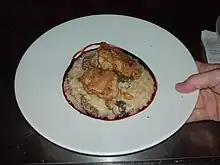 Lechecillas sobre risotto de hongos.