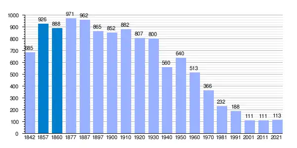 | Gráfica de evolución demográfica de Ledanca[4] entre 1842 y 2021 |