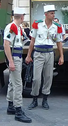 En el acuartelamiento, solía usarse una funda blanca para el quepis, así como una chaqueta (veste) azul oscuro, con camisa y pantalones blancos. La cubierta original del quepis era caqui y, debido al lavado constante, se volvió rápidamente blanca. La cubierta de quepis blanco o caqui no fue única en la Legión pero era habitual entre otras unidades del frente francés en África del Norte.