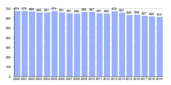 | Gráfica de evolución demográfica de Leira entre 2000 y 2019 |