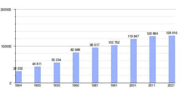 | Gráfica de evolución demográfica de Leiría entre 1864 y 2021 |