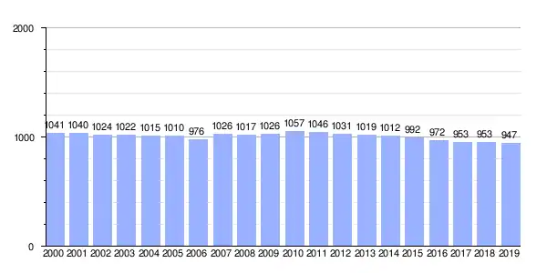 | Gráfica de evolución demográfica de Leiro entre 2000 y 2019 |