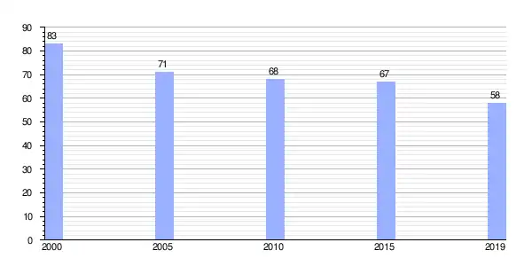 | Gráfica de evolución demográfica de Lexo (aldea) entre 2000 y 2019 |
