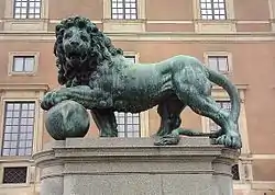Los modelos para los leones de bronce fueron terminados en 1700 por el escultor francés Bernard Foucquet el Joven (1640-después de 1711).[5] Foucquet usó leones de piedra en la Villa Medici en Roma como prototipos para el encargo, mientras que la Corona tuvo que fundir esculturas tomadas del castillo de Kronborg en Dinamarca para ensamblar la cantidad requerida de bronce.[4]