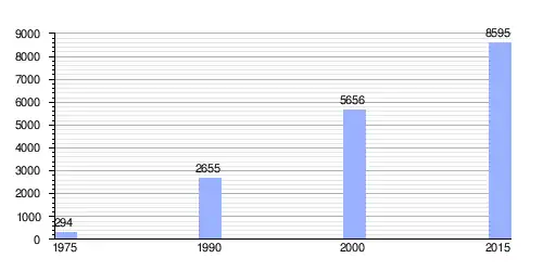 | Gráfica de evolución demográfica de Lele entre 1975 y 2015 |