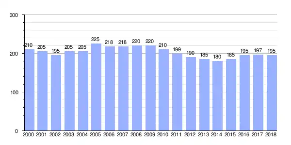 | Gráfica de evolución demográfica de Lema entre 2000 y 2018 |