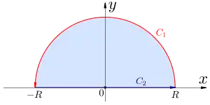Dónde Res(f, zk) denota el residuo de f en la singularidad zk. De ahí, si f satisface la condición , entonces tomando el límite donde R tiende a infinito, la integral de contorno sobre C1 se anula por el lema de Jordan, y obtenemos el valor de la integral impropia