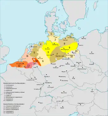 Los numerales para diferentes variedads bajogermánicas son:[1] [2]