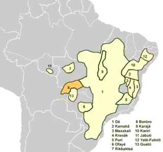 - Borôro occidental, extinto, E Mato Grosso, Brasil, extinto.