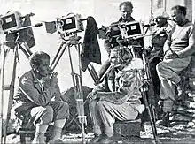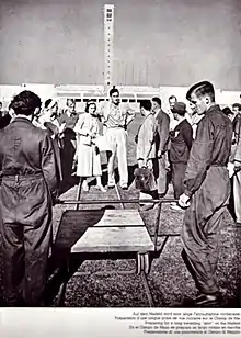 Cuando Alemania invadió Polonia el 1 de septiembre de 1939, por orden de Hitler se formó la «tropa especial de filmación Riefenstahl» (Sonderfilmtrupp Riefenstahl),[lower-alpha 6] que incluía a ella, los ingenieros de sonido Hermann Storr, Walter Traut, los hermanos Gustav y Otto Lantschner, Sepp Allgeier y otros cuatro técnicos. Estaban equipados con dos limusinas Mercedes de seis plazas, una motocicleta BMW con sidecar y tarjetas de combustible para setecientos litros de gasolina, un vehículo de grabación de sonido y uniformes especiales diseñados con máscaras antigás y pistolas de bolsillo. El equipo de filmación fue enviado al Frente Oriental el 10 de septiembre de 1939 para documentar la invasión a Polonia.[97] Riefenstahl colaboró porque quería sentirse útil;[98] en ese país fue fotografiada vistiendo uniforme militar y portando una pistola en el cinturón en compañía de soldados alemanes.[44][99]