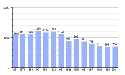 | Gráfica de evolución demográfica de Lenna entre 1861 y 2001 |