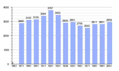 | Gráfica de evolución demográfica de Lentiai entre 1861 y 2001 |