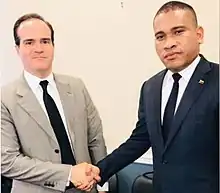 En 2019, emprendió una gira política internacional que lo llevó a Washington, donde se reunió en la Casa Blanca con Mauricio Claver Carone, asesor del entonces presidente Donald Trump.[21][22] Durante su visita, también sostuvo reuniones con Wyndee Parker, asesora de Nancy Pelosi,[23] y posteriormente con Bill Richardson en 2021.[24]