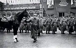 El 24 de junio de 1945, el mariscal de la Unión Soviética Leonid Góvorov participó en el histórico Desfile de la Victoria de Moscú en la Plaza Roja, al frente de las unidades del Segundo Frente Báltico.[20]