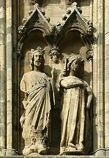 ![]() Leonor de Castilla junto a su esposo, Eduardo I, en la Catedral de Lincoln. | ||