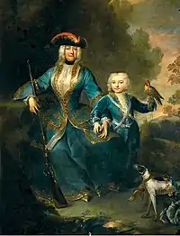 ![]() Leonor von Schwarzenberg junto a su hijo José Adán hacia 1727, del artista Maximilian Hannel. | ||