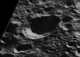 ![]() Imagen oblicua mirando al norte desde el Apolo 16, con el Mare Moscoviense al fondo | ||