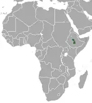 Está restringida a un área geográfica muy pequeña, en las montañas etíopes, pero dentro de esta reducida zona es muy abundante, por lo que no se considera amenazada,[1] encontrándose entre los 2.140 y los 4.380 m s. n. m., donde se alimentan en los prados de alta montaña.[2]